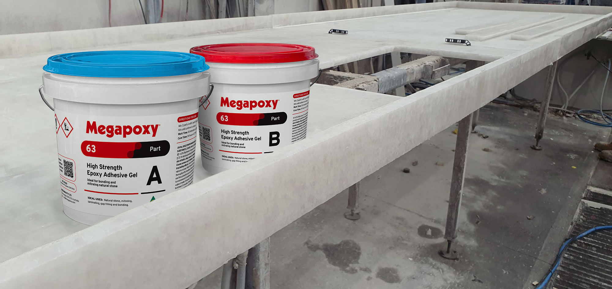 We recommended Megapoxy 63 for this project: a powerful adhesive gel that provides strong and seamless joins and connections. Especially good for mitre joints, its thin glue line, clear finish and sustained impact resistance made it the perfect choice for this stunning benchtop.