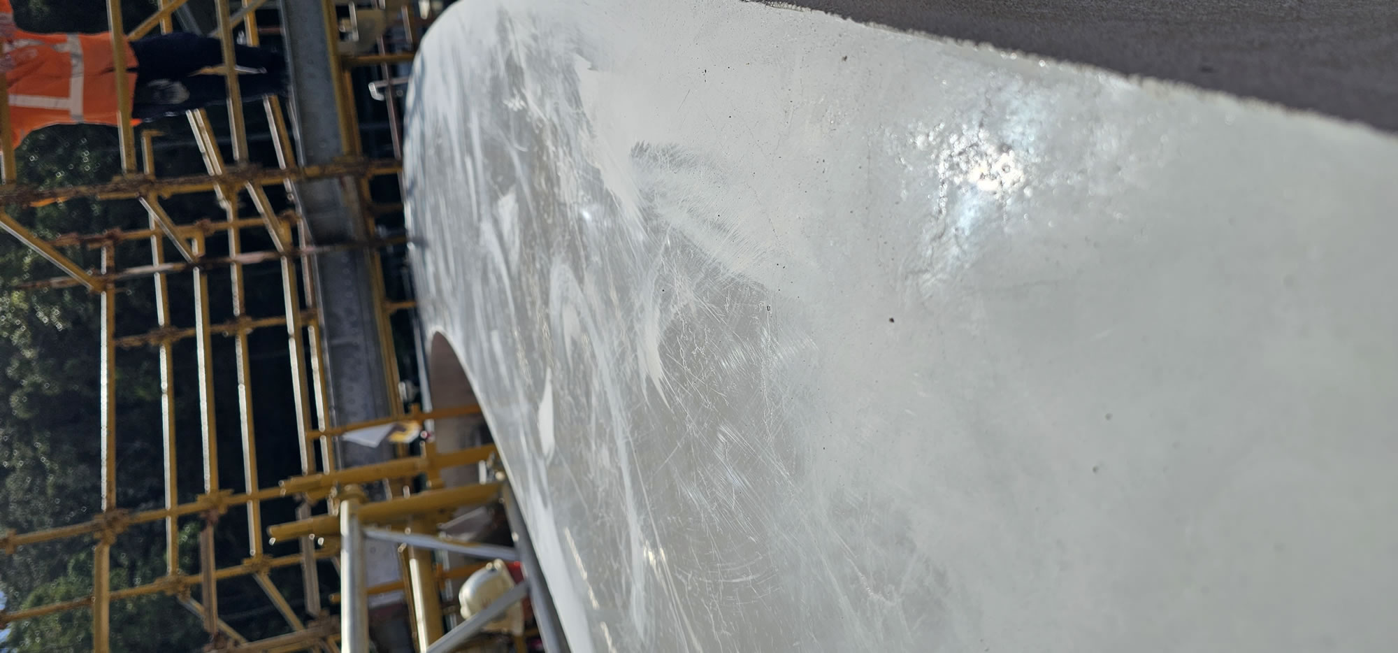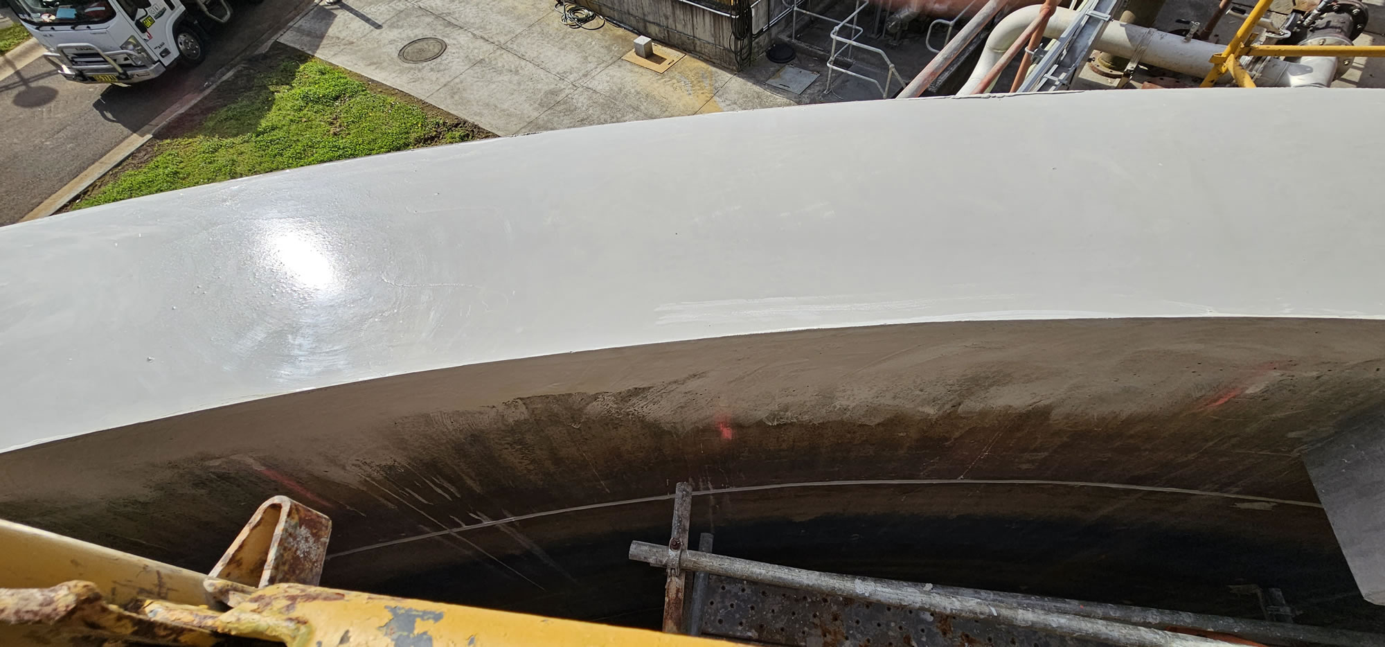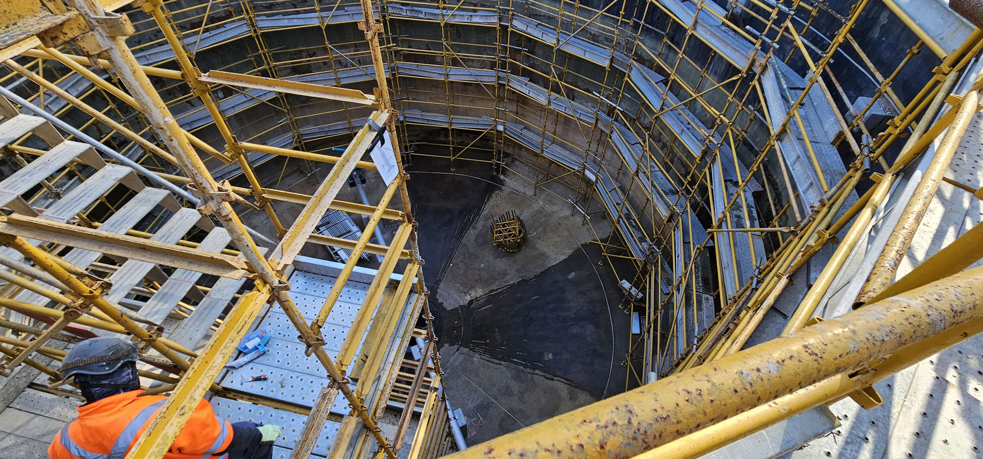 Crews constructed formwork inside and outside the top edge, then progressively poured 16-litre kits along the full 60-metre circumference – allowing controlled heat generation. The result was a precision-flat, seamless surface ready for installation of the new steel dome and rubber seal.