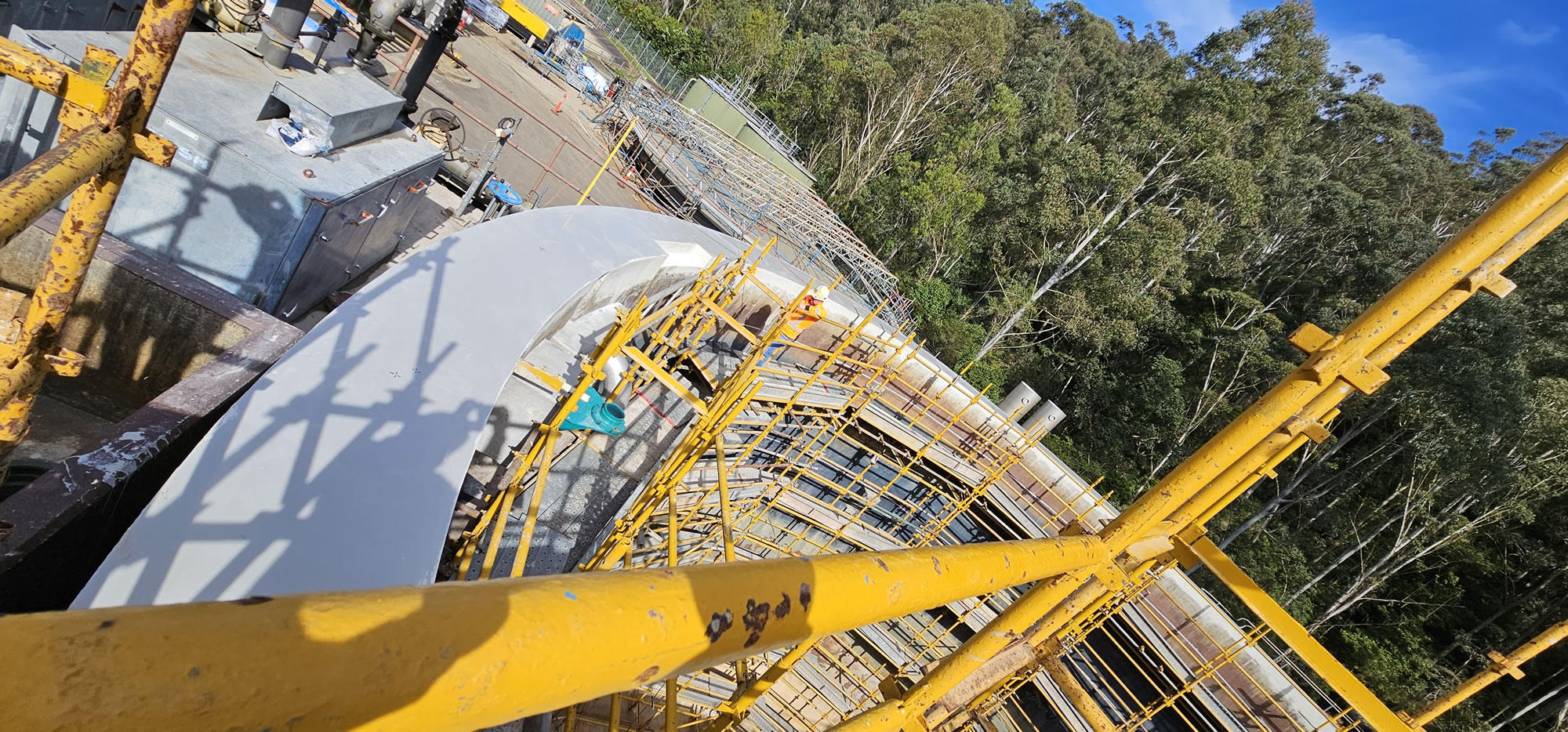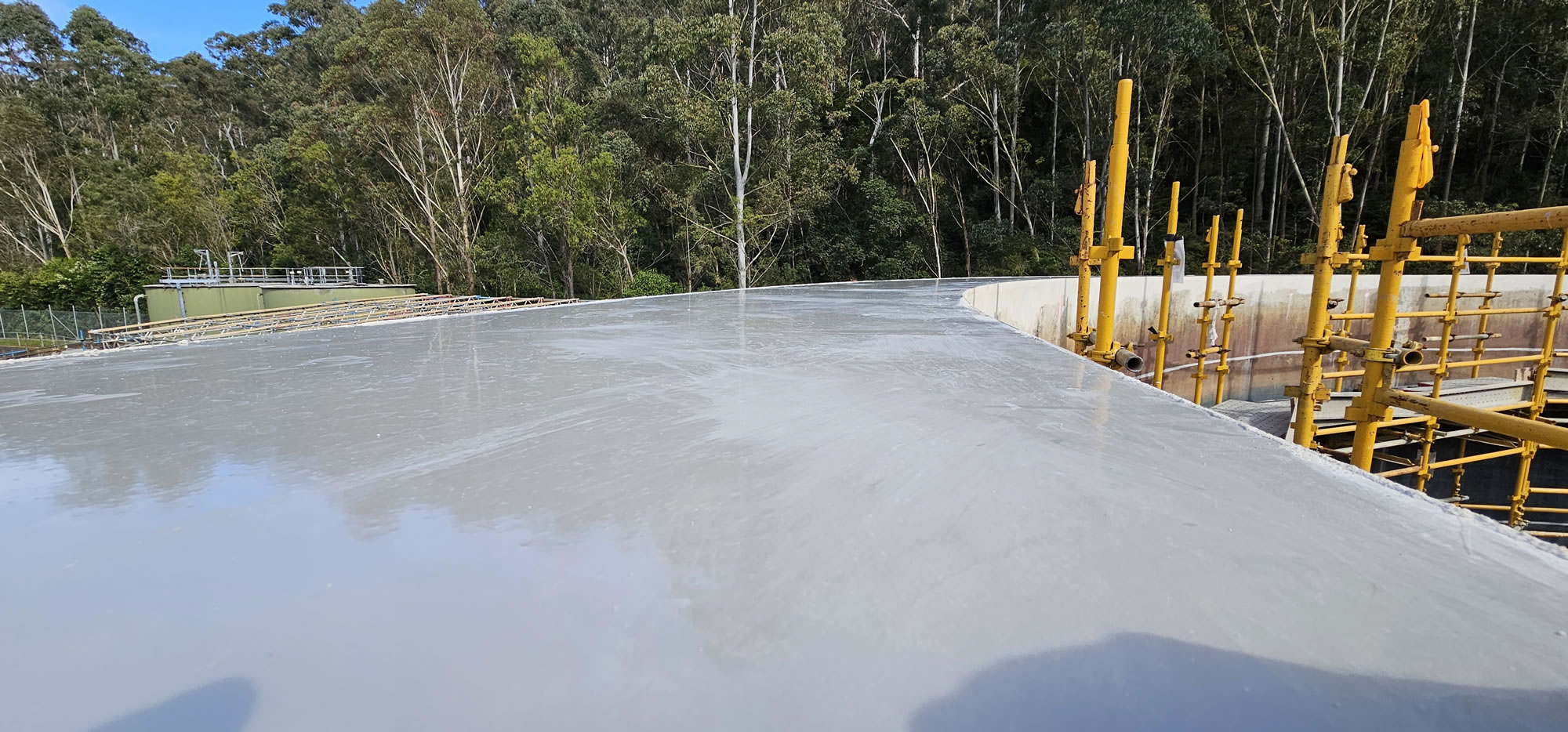 At this vital wastewater facility, Megapoxy supported upgrades to a massive concrete digester that breaks down sewage solids into biogas (a renewable energy source) and reusable byproducts. A new 16.8-metre steel dome cover was installed to keep out oxygen, contain harmful gases like methane and hydrogen sulfide, and capture biogas safely. The 60-metre-circumference concrete rim was levelled with Megapoxy 206 Ultra, creating a perfectly flat, high-strength epoxy surface for a precise seal between the structure, rubber layer and steel cover.